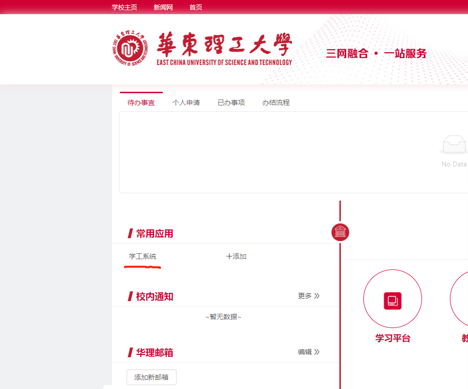 2.進(jìn)入學(xué)工系統(tǒng)(需要校園網(wǎng)登入或使用VPN)