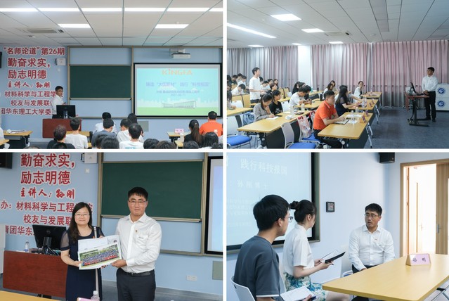 袁媛為孫剛校友贈(zèng)送了一份“華理記憶”,包括在校時(shí)的合影照片、入學(xué)登記表和博士科研生涯的相關(guān)本文材料復(fù)印件。袁媛在總結(jié)發(fā)言中指出,我國(guó)還面臨許多“卡脖子”技術(shù),而80%的“卡脖子”技術(shù)都和材料相關(guān),材料青年大有可為,激勵(lì)在場(chǎng)學(xué)生向優(yōu)秀的孫剛師兄學(xué)習(xí),勤奮求實(shí),勵(lì)志明德,為建設(shè)科技強(qiáng)國(guó)砥礪奮斗,未來(lái)成為杰出校友。