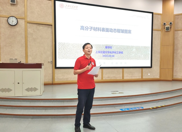 姜學松教授作題為“高分子材料表面動態(tài)褶皺圖案”的交流報告。他從一張白紙在褶皺前后的承重變化為例,形象地展示了褶皺的功能。結(jié)合在華理求學的經(jīng)歷,工作后與同窗好友研討學術(shù)的故事,深入淺出地介紹了課題組圍繞智能高分子表面中動態(tài)微納米圖案制備和調(diào)控這一關(guān)鍵問題,將動態(tài)交聯(lián)聚合物網(wǎng)絡(luò)引入到自然界常見的表面褶皺圖案體系中,提出了基于動態(tài)化學構(gòu)建動態(tài)表面微納米圖案的新策略,解決了表面動態(tài)圖案難以制備的難題,構(gòu)建了一系列具有溫度、pH、可見光和紅外光響應(yīng)性的多級次圖案化表面,利用動態(tài)表面褶皺圖案構(gòu)建3D動態(tài)指紋的策略,探索了動態(tài)表面褶皺圖案作為智能光學材料在動態(tài)光柵、傳感、防偽等領(lǐng)域的應(yīng)用,為新生們打開了科研思路。